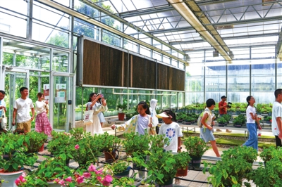 脚步移至田野开心农场,泥土气息瞬间被科技浪潮取代。传感器如敏锐神经感知栽培需求,灌溉系统自动织就水网。在番茄大棚,4亩地的场馆,产出量达6万斤,年产值100多万……一串串数字,让孩子们真切感受到科技改变生活的力量。小小记录者漆子洋感叹道:“工作人员依托智能化种菜,设备终端上的数据,就是他们丰收的秘密钥匙。”