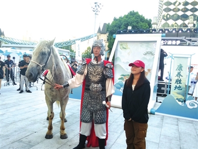 在13日楚河汉街专场,三国主题开场舞《好美一个湖》瞬间点燃现场,当赤壁古战场推介官展示“东风锦囊”——夜游赤壁的沉浸式剧本杀、1818周年限定文创时,观众席爆发阵阵惊叹。在现场,一匹来自赤壁的白马与“周瑜”跨马亮相,刀光马影重现三国豪情,将现场气氛推向高潮。挤在前排的武汉市民郭女士兴奋表示:“第一次在武汉街头看到真马!这让我对咸宁赤壁古战场充满向往,真想亲自策马体验那份飒爽!”