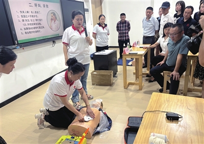 理论讲解结束后转入实操环节。政协委员们两两一组,轮流上阵,学习氛围热烈。“我刚开始按压力度不够,定爱珍委员认真纠正我的姿势,还提醒我按压后要观察患者面色是否好转。”钟琼委员感慨,以前总觉得急救是专业人员的事,今天才明白,“人人学急救,急救为人人”不是口号,而是每个人都能掌握的“保命技能”。