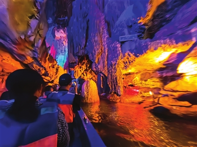 面对持续高温,咸宁的避暑玩法新意迭出。7月22 日,考察团探秘通山隐水洞地质公园,洞内 20℃的恒温与亿年钟乳石奇观形成 “天然空调房”。考察团乘小船穿梭地下河、坐轨道车穿行奇石间,不时用镜头记录钟乳石的奇幻姿态。