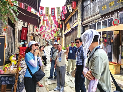 茶香流韵,石板成诗。7月21日,考察团漫步羊楼洞古镇,鳞次栉比的复古商号、雕花门窗与复原的茶庄、书院,诉说着这座 “中国青砖茶之乡” 作为欧亚万里茶道源头的悠久故事。古街特色小吃与非遗体验,让团员们沉浸式感受古镇风情。
