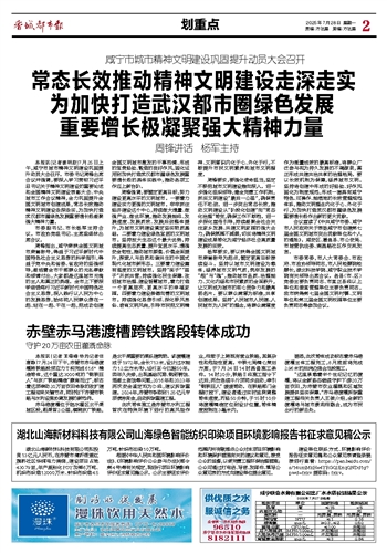 常态长效推动精神文明建设走深走实 为加快打造武汉都市圈绿色发展重要增长极凝聚强大精神力量