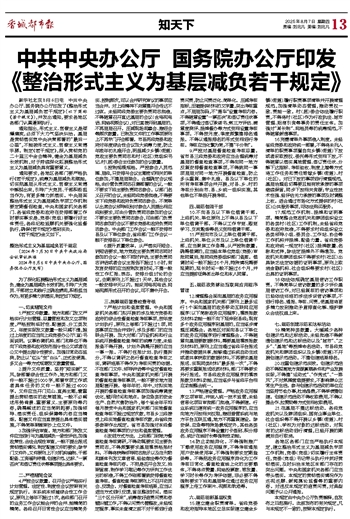中共中央办公厅国务院办公厅印发《整治形式主义为基层减负若干规定》