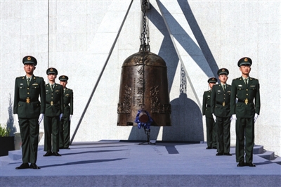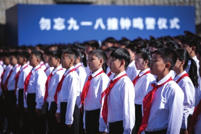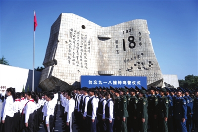 今年是九一八事变爆发94周年。9月18日上午,“勿忘九一八”撞钟鸣警仪式在沈阳“九·一八”历史博物馆残历碑广场举行。 (据新华社) 6版
