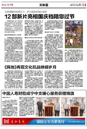 本报综合消息 国庆中秋假期即将到来,《志愿军:浴血和平》《刺杀小说家2》《熊猫计划2》《三国的星空第一部》《猪猪侠·一只老猪的逆袭》《风林火山》等12部新片将于国庆档上映,陪伴观众欢度双节。今年的国庆档由主旋律题材担纲主力,此外还有动作、喜剧、动画等多类型影片亮相,为各年龄层观众提供丰富选择。