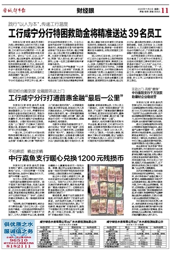 工行咸宁分行特困救助金将精准送达39名员工