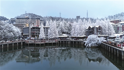 元旦假期,我市九宫山和大幕山森林公园迎来新年首场降雪。漫天雪花,肆意飘洒,把群山装扮得玉树琼枝,美如画卷,游客们登山赏雪、观景拍照,尽情享受冰雪的乐趣。 (记者 赵忠志 鲁芳 通讯员 张枭雄)