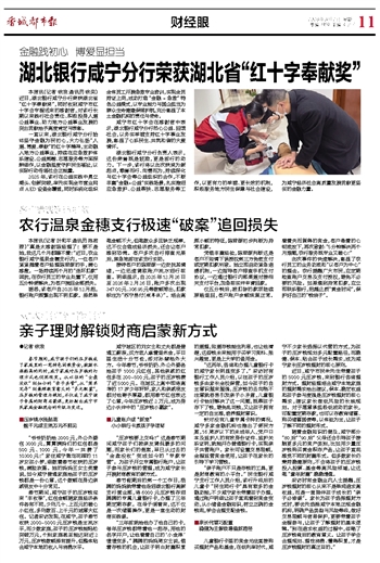 湖北银行咸宁分行荣获湖北省“红十字奉献奖”