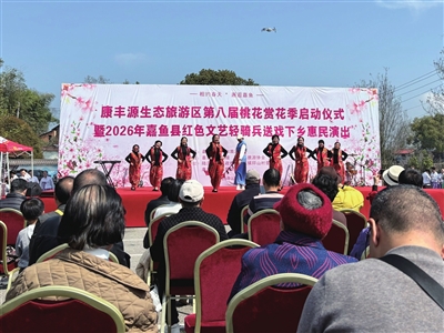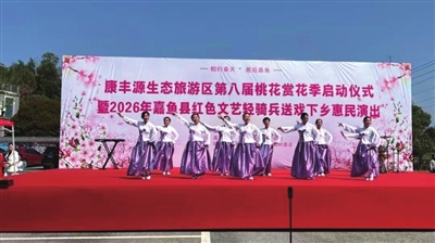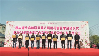 春和景明,桃花灼灼。3月21日上午10时,康丰源第八届桃花赏花季启动仪式暨2026年嘉鱼县红色文艺轻骑兵送戏下乡惠民演出活动,在嘉鱼县陆溪镇印山村康丰源生态旅游区隆重举行,千亩桃林迎客来,八方游人踏春至,共赴这场兼具生态之美与文化之韵的春日盛会。