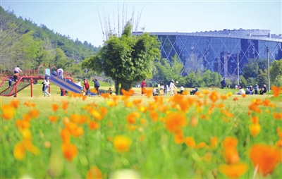 最近,市图书馆旁的绿地悄然铺上了一片金色地毯。花菱草橙黄花朵随风摇曳,与湛蓝天空、葱郁林木相映成趣,为城市增添了一抹动人亮色。