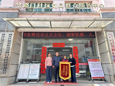 本报讯(记者陈志茹 通讯员邵诗玄 吴静红 刘超男)“社区一直惦记着我,网格员每周上门来帮忙……”3月18日,咸安区温泉街道岔路口社区潜峰园小区,78岁的独居老人刘会清将一面锦旗递到网格员汤丽红手中,泛红的眼眶里满是感激。