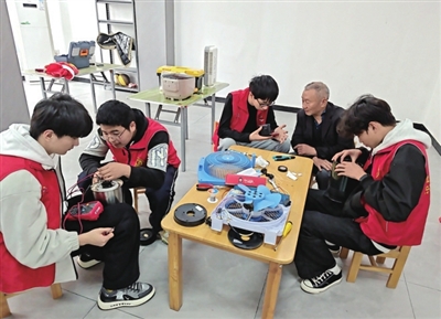 活动当天,居民们陆续抱着故障的电风扇、热水壶、电饭煲等小家电有序排队,由党员教师和学生志愿者组成的维修团队,熟练地对家电进行拆解、检测、维修,手中的螺丝刀、万用表在电器间灵活穿梭,专注而认真。维修现场,志愿者们一边更换损坏零件,一边耐心向居民普及家电日常保养技巧,让居民既解决了实际难题,又学到了实用知识。