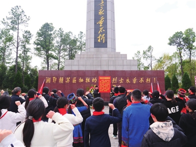 3月27日,崇阳县大集中学50余名师生赴革命烈士陵园开展 “缅怀革命先烈 传承红色基因” 主题实践活动,以宣誓、红色集邮等a形式赓续红色血脉。