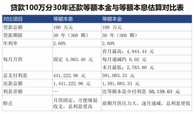 等额本息每月还款金额固定不变,每月还款压力较小,便于借款人安排家庭收入的支出计划,但需要支付更多的利息。