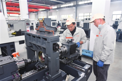 日前,通城县湖北中聪智能装备有限公司,工作人员正在车间组装走心机。据悉,该企业总投资5.18亿元,占地面积50亩,专注于高端智能数控机床的研发、生产制造,预计年产值达5亿元。 (记者 张仰强)