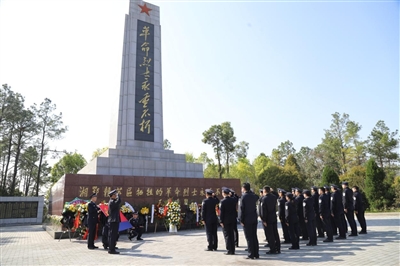 4月1日,崇阳县公安局组织青年民警赴革命烈士陵园开展清明祭扫,缅怀英烈、重温誓词,传承红色精神,践行公安使命。(记者 庞赟 通讯员 魏圆)