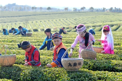4月1日,通城县实验学校组织少数民族学生,走进沙堆九井峰茶园,开展社会实践活动及“采茶小能手”竞赛,近距离感受农事,增长农事知识,体验劳作的辛苦与快乐。(通讯员刘建平)