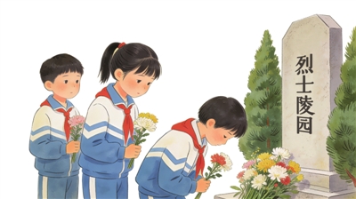 清晨,妈妈骑电动车载着我,抵达烈士陵园。老师已在门口等候,手中捧着大把菊花,分给我们每人一朵。花茎上的水珠凉丝丝的,瞬间驱散了烈日的燥热。