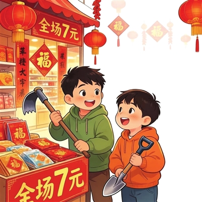 而我和弟弟,则在角落那个“全场7元”的小摊前蹲下。没有商量,两双小手同时伸出——我抓起一把小锄头,弟弟握住一柄小铲子。我们相视一笑。城市的水泥地困不住童年的想象,我们都想到了乡下老家湿润的泥土,想到开春后能在那片柔软的土地上挖出春天的第一棵嫩芽,或许还能挖出一条蚯蚓曲折的梦。