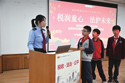 “大家知道税收都用在哪些地方了吗?”“大家知道自己为税收做过很多贡献吗?”……税务知识小课堂上,税务干部从小记者的生活场景切入,用通俗易懂的语言、深入浅出地讲解税收的核心用途、税收与民生保障的密切关系。课堂上还播放了趣味税收影片、穿插有奖互动问答,生动有趣的讲解形式让现场气氛热烈高涨,充分调动起孩子们的学习积极性,让“税收取之于民、用之于民”的理念入脑入心。