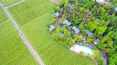 4月15日,崇阳县白霓镇油市村小自然田园综合体,茂密林木环绕着错落分布的简约民宿,蜿蜒步道串联起各处,田园风光与度假休闲功能完美相融。 (记者陈红菊 通讯员胡蔓莉)