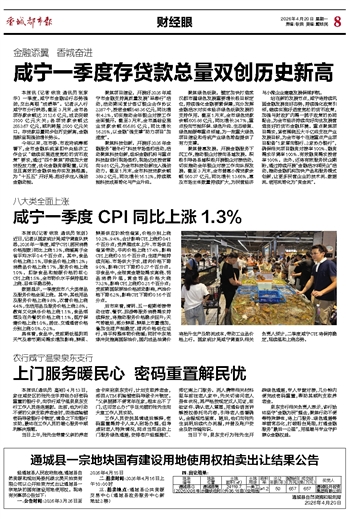 咸宁一季度存贷款总量双创历史新高