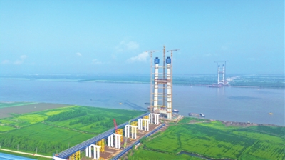 | 汉南长江大桥嘉鱼段建设提速 |