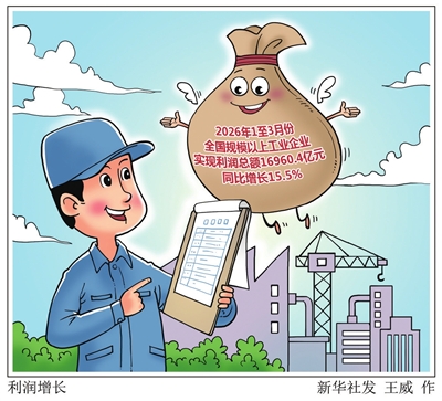 新华网消息 国家统计局27日发布数据显示,1至3月份,全国规模以上工业企业实现利润总额16960.4亿元,同比增长15.5%。