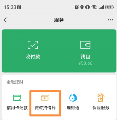 微粒贷暂时没有独立APP,如果要使用微粒贷借款,先要找到官方入口。在微信服务里找到“微粒贷借钱”字样的图标,点进去按照提示操作即可开通,全程线上操作,不需要提供抵押,不用提供任何纸质材料。开通后,可以在自己的微粒贷页面看到授信额度和年利率(单利),除借款利息外,不收取任何费用。