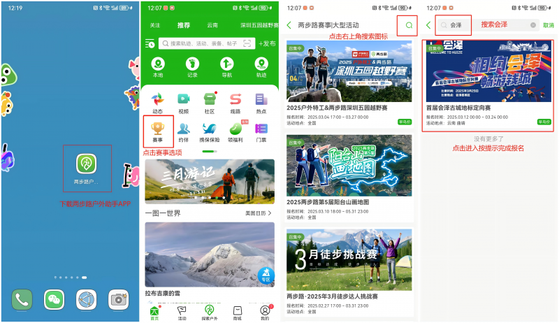 2.两步路户外助手APP或小程序线上报名前往“两步路户外助手”APP或微信小程序线上报名。