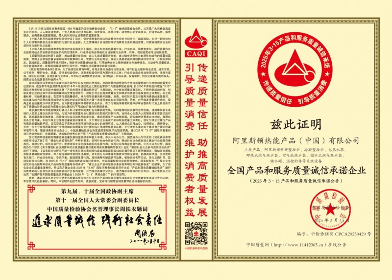 近日,一年一度的“3·15国际消费者权益日”如约而至,在这个产品与服务体验备受关注的重要时刻,意大利供暖热水世家阿里斯顿凭借高品质的产品体验与良好口碑,在由中国质量检验协会主办的2025年"3·15产品和服务质量诚信承诺主题活动"中,一举斩获"全国产品和服务质量诚信承诺企业"、"全国质量检验稳定合格产品"和"全国消费者质量信誉保障产品"三项重量级质量奖项,以品质荣誉开启 2025 年的精彩篇章。