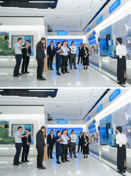 活动中,itc保伦股份党总支书记刘虎带领各共建单位领导一行实地参观了智慧展厅、智慧指挥中心、视听体验室、智慧教室以及现代化报告厅等场景。