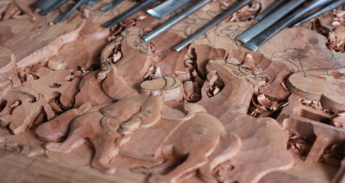 在通山县一处古色古香的工作室内,非遗传承人正全神贯注地雕刻着一块黄杨木。刻刀游走间,木屑纷飞,一幅精美的山水画卷徐徐展开。近日,武汉工程科技学院"智雕乡韵"非遗传承团队的成员来到这里,开启了一场传统与现代的对话。