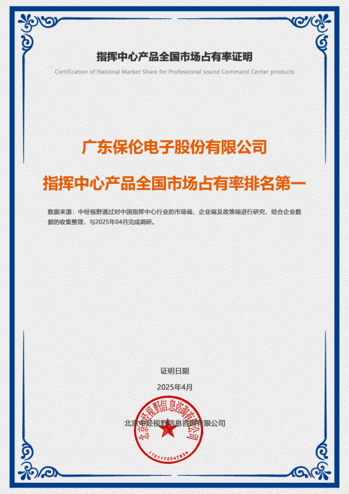 近日,中经视野发布了《中国指挥中心2024年度TOP10企业市场份额排名》,itc保伦股份作为声光电视讯行业头部企业,正以持续创新的技术实力和深耕行业的专业精神,脱颖而出,成功登上榜单榜首,成为声光电视讯行业的领军者。