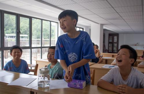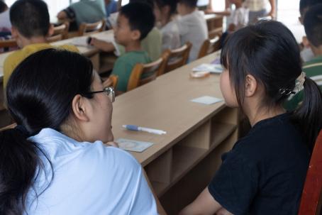 紧接着,9 名实践队员依次进行自我介绍。“我是会打篮球和排球的咸鱼老师”“跟着我能学会一些摄影知识哦”,轻松幽默的话语瞬间打破了与孩子们之间的陌生感,孩子们嘴角上扬,现场气氛轻松融洽。