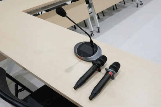 发言单元选用 itc全数字会议系统与无线手持话筒,满足不同演讲者的使用需求。系统美观精致、高端大气,内置镀金振膜超心型指向性电容式咪芯,具备广播级高清音质,抗信号干扰能力强,能够避免发言过程中产生噪音和啸叫,可实现超远距离拾音,保障活动进程顺利开展,为报告厅每一场活动提供了一个稳定可靠、功能强大的发言系统。