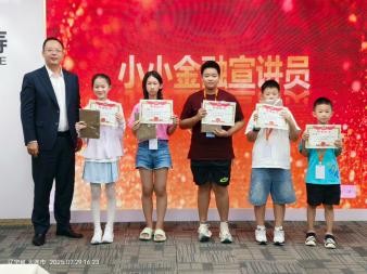傍晚时分,结营仪式温情启幕。家长们应邀而至,共同见证孩子们一日沉淀的成长轨迹。孩子们依次登台,以清澈童声细数研学所得,字句间稚气而笃定。当孩子们亲手创作的防骗短片在大屏流转,镜头里认真的神情与清晰的表达,让席间掌声迭起,家长们眼中满是欣慰。仪式尾声,所有参训学生均获授 “小小金融宣讲员” 称号,证书捧在手中,映着一张张雀跃的脸庞,也为这场金融启蒙之旅画上圆满句点。