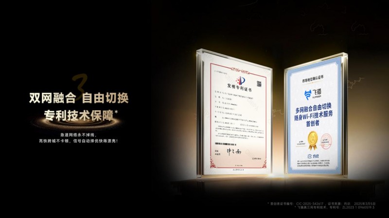 高铁跨城时网络时断时续?偏远地区信号时好时坏?作为随身 WiFi 技术服务的首创者,飞猫用自研专利技术实现了 5G 双网融合。它能根据信号强度自动切换最优网络,高铁飞驰中、城乡交界地带都能保持连接稳定,真正做到速网络 “永不掉线”,让你随时随地与世界顺畅连接。