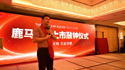 聚光灯下,姜会斌董事长站在舞台中央,目光坚定而深邃,声音微微颤抖却充满力量。他缓缓讲述着鹿马108追梦的十三年——从一间小小的办公室起步,白手起家,多少个日夜奔波之间,曾为鹿马上市之路彻夜不眠,创业路上,有过质疑,有过困顿,但从未有过放弃。“我们一路走来,靠的不是运气,是坚持,是每一个鹿马人不服输的拼劲!”当他说到“今天,我们终于站在这里,敲响属于我们的钟声”时,台下掌声雷动,大家眼眶泛红。那一刻,十三年的风霜雨雪仿佛化作光芒,照亮了舞台,也照亮了所有人的初心——这一切,都值得了。