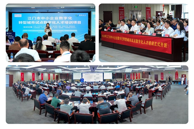 江门作为粤港澳大湾区重要的制造基地,中小企业数量众多、活力强劲,是我市经济韧性和发展潜力的重要支撑。但我们也要清醒地认识到,不少企业在推进数字化转型过程中,仍面临战略模糊、路径依赖、人才短缺等现实困境。尤其在企业核心决策层,是否具备数字认知能力、战略规划能力和执行落地能力,直接决定了转型的成效。正因如此,我们坚持把人才培育作为数字化转型城市试点的基础工程和先导环节,着力打造多层次、多形式的培训体系,帮助企业管理者拓宽视野、提升素养、突破瓶颈。