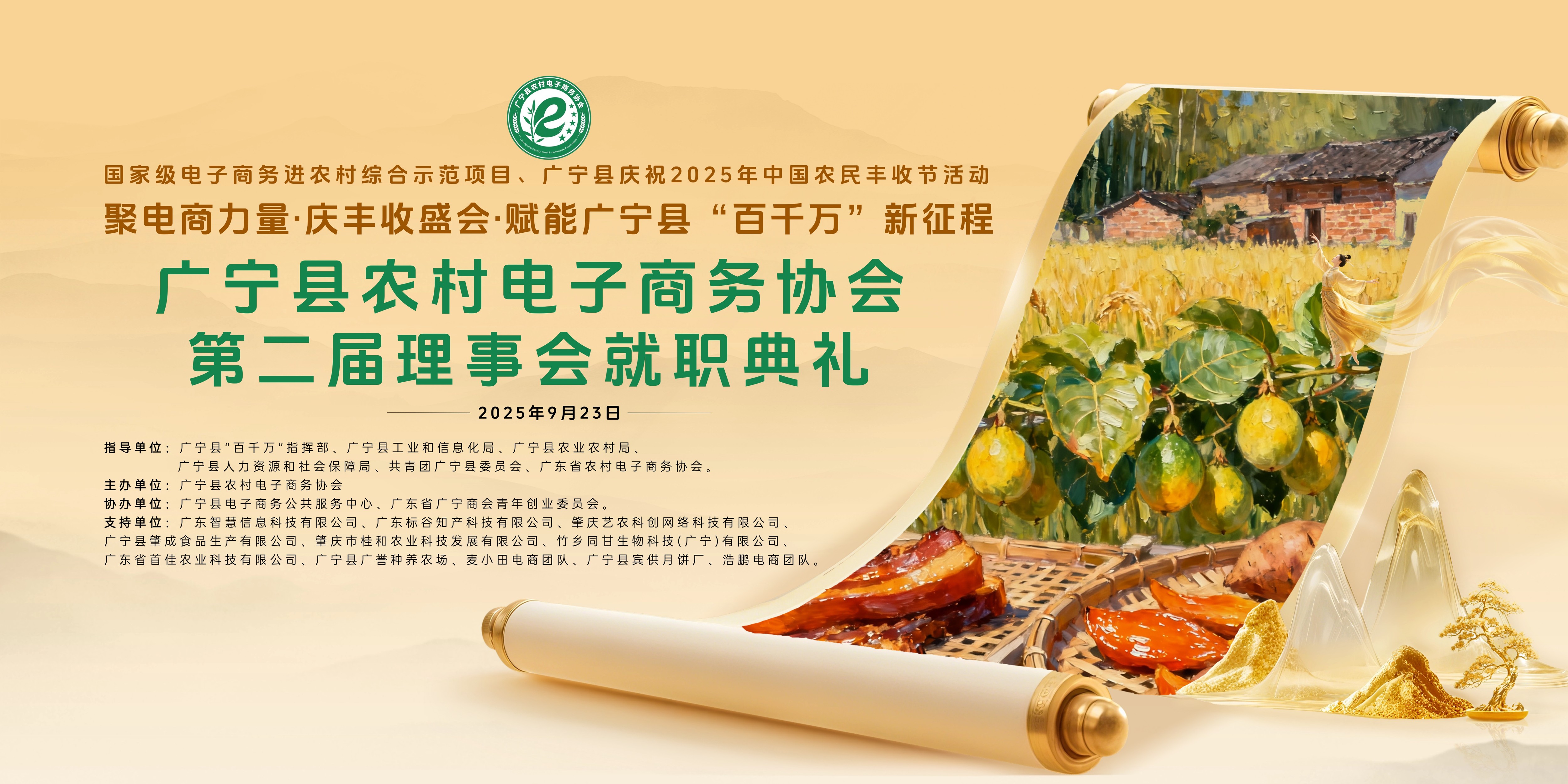 9月23日,正值中国农民丰收节,广宁县农村电子商务协会以“聚电商力量・庆丰收盛会・赋能广宁县‘百千万’新征程”为主题,举办第二届理事会就职典礼。