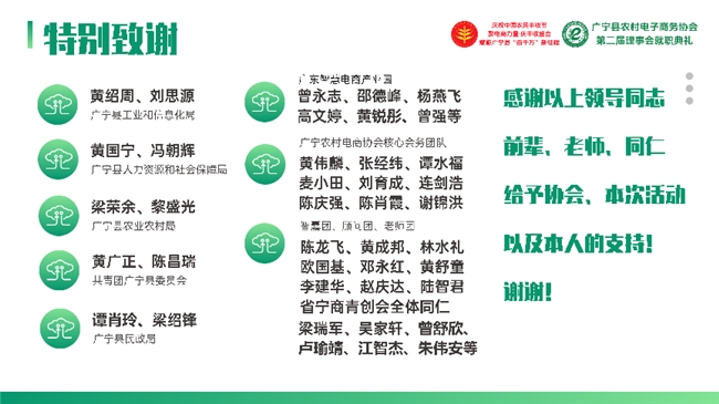 广宁县农村电子商务协会将以此次就职典礼为新起点,深入贯彻国家乡村振兴战略与广东“百千万工程”部署,持续深化政策对接、资源整合、人才培育等工作,让电商力量更好地赋能农业发展、助力农民增收,为广宁县域经济高质量发展贡献更大力量。