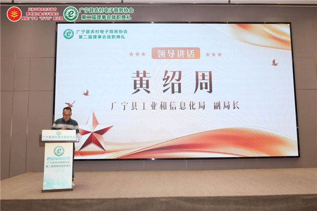 主管部门广宁县工业和信息化局副局长黄绍周发表讲话,对协会成立以来的工作成果给予充分认可。他指出,协会在助力广宁县成功申报“国家级电子商务进农村综合示范县”、推动农产品上行、开展创业培训等方面成效显著,已成为县域电商产业发展的重要纽带。黄绍周向新一届协会班子表示祝贺,并围绕“对接‘百千万’工程、深化产业融合、强化人才培育” 提出指导意见,承诺主管部门将持续为协会发展提供支持。