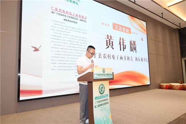 执行秘书长黄伟麟宣读了广东省农村电子商务协会发来的贺函。贺函对协会的工作成绩予以高度评价,肯定其在基层电商组织建设中的示范作用,并表达了深化省市县三级联动、共享资源、共促发展的意愿,为广宁农村电商融入全省发展大局注入信心。