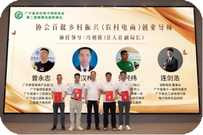 为落实“乡村振兴、人才先行”的策略,培养人才服务广宁乡村,协会在县人社局指导下启动建立“乡村振兴(农村电商)”师资库。县人社局副局长冯朝辉为首批4位创业导师颁发聘任证书,曾永志、关汉槐、张经纬、连剑浩获聘入库。创业导师代表曾永志发言表示,将发挥自身经验优势,为农村电商创业者提供实战指导与资源对接服务。