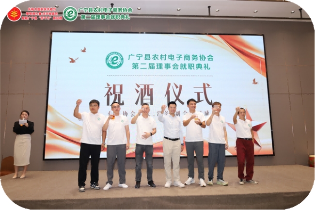 在新一届协会班子团队的带领下,全场嘉宾共同举杯祝酒,主持人宣布广宁县农村电子商务协会第二届理事会就职典礼圆满成功。