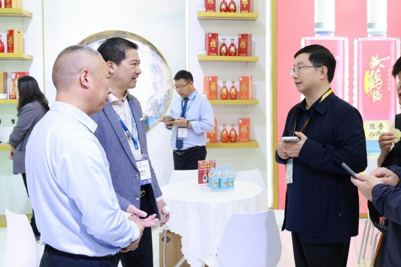 开幕式后,蔡开云来到位于中国白酒名酒展区的稻花香展厅,现场了解企业布展情况,并与前来展厅的行业嘉宾、企业代表沟通交流,介绍稻花香产业发展态势,探讨宏观经济、行业发展、科技创新、品牌战略等情况。