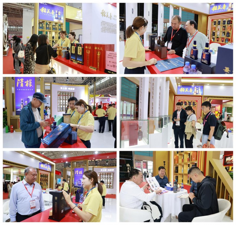 展厅内,多维度展示了稻花香高端酱香产品手抄件系列、珍藏级兼香白酒清样系列、战略培育产品活力家族、浓香大单品珍品系列,以及稻花香全国首创的馫香品类馫香原浆、山水风系列。匠心之作、生态之酿、品质美酒,备受与会客商关注,大家纷纷驻足咨询、品鉴,了解稻花香酿酒工艺、系列产品、酒体特点等。