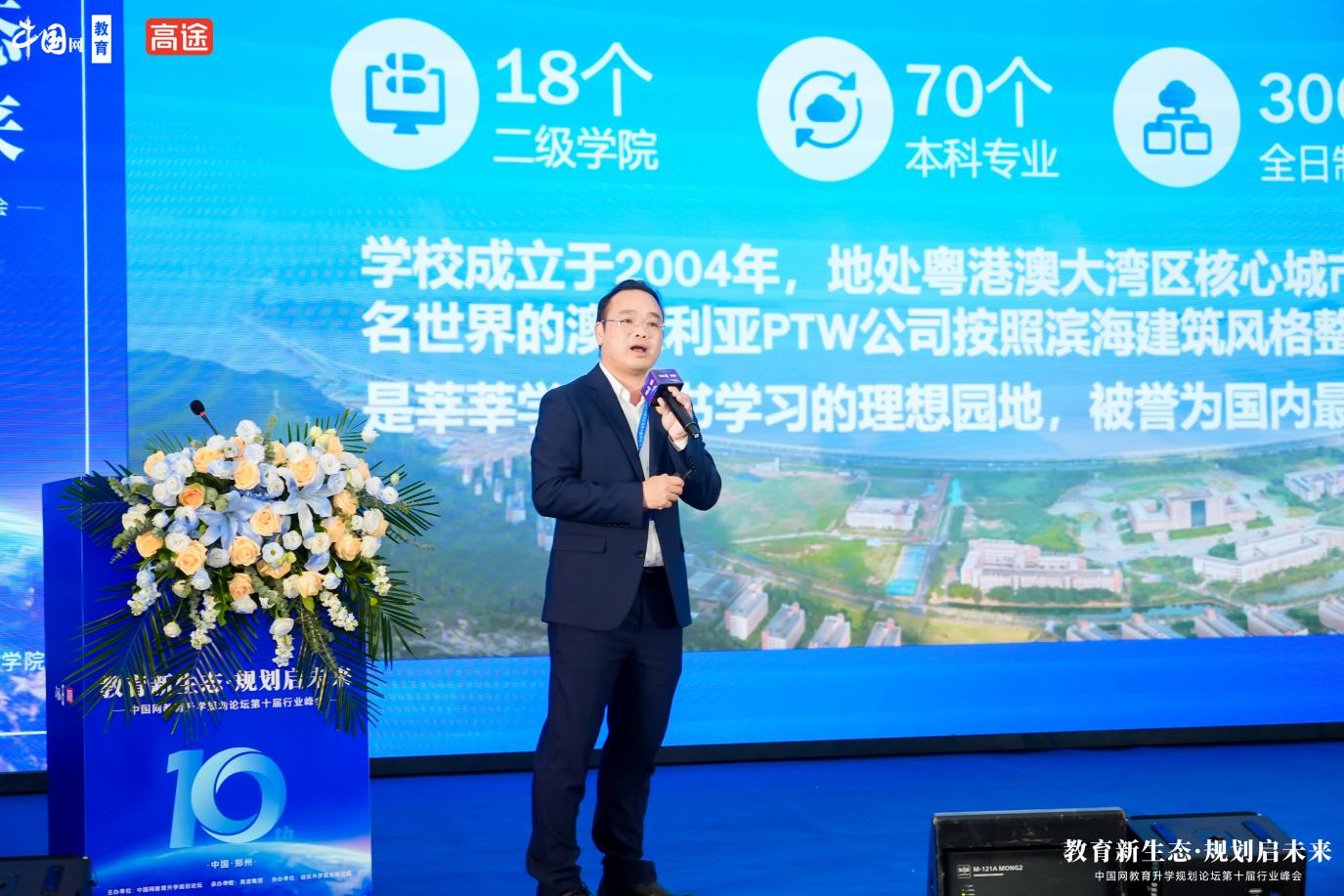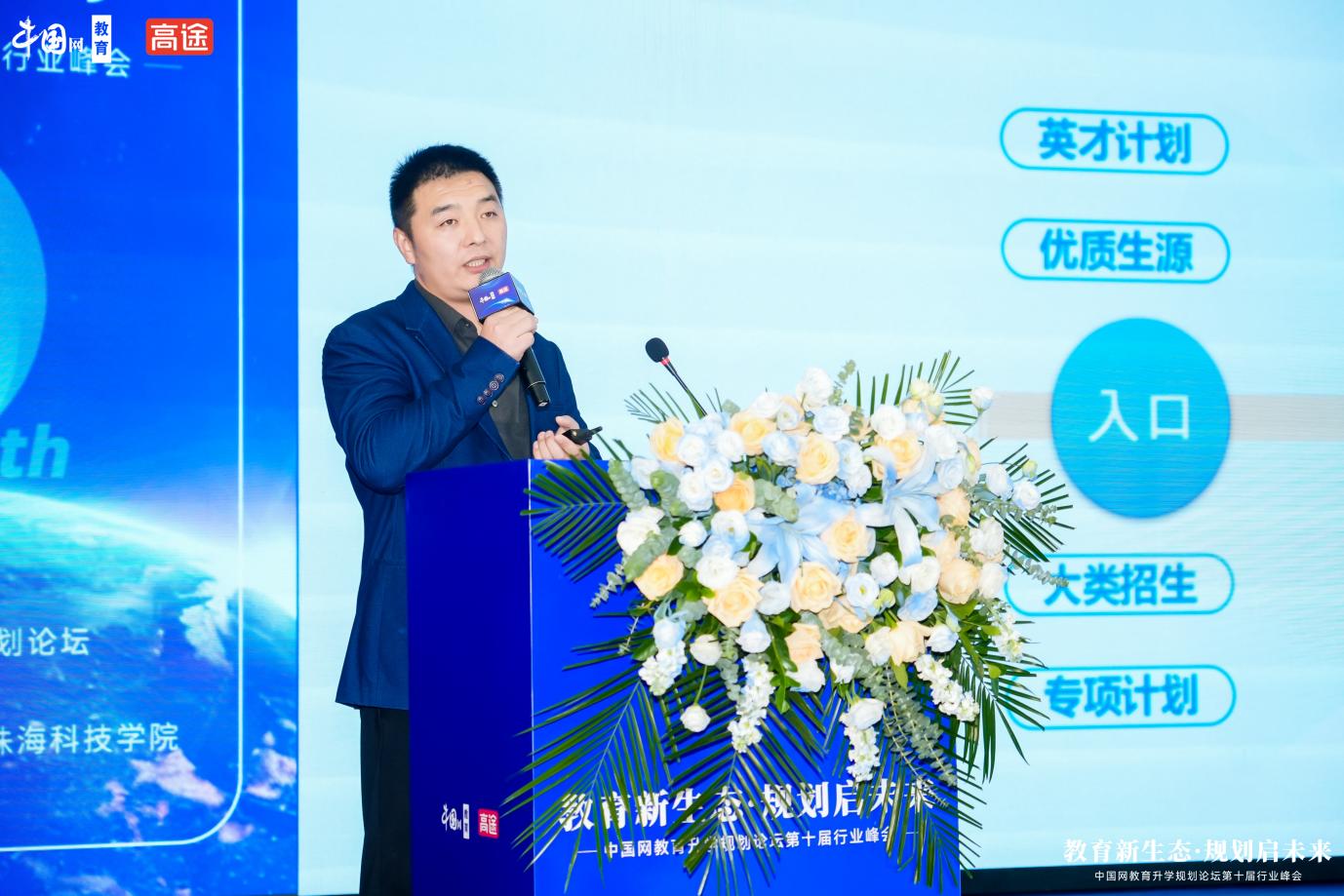 珠海科技学院招生与就业处副处长陈闪荣做主题演讲:《围绕地方产业发展,贯通“招培就”培养高素质人才》。他表示,学校紧密对接地方产业发展需求,打造鲜明办学特色,实施有吸引力的招生政策,实现了人才培养与就业的精准衔接。