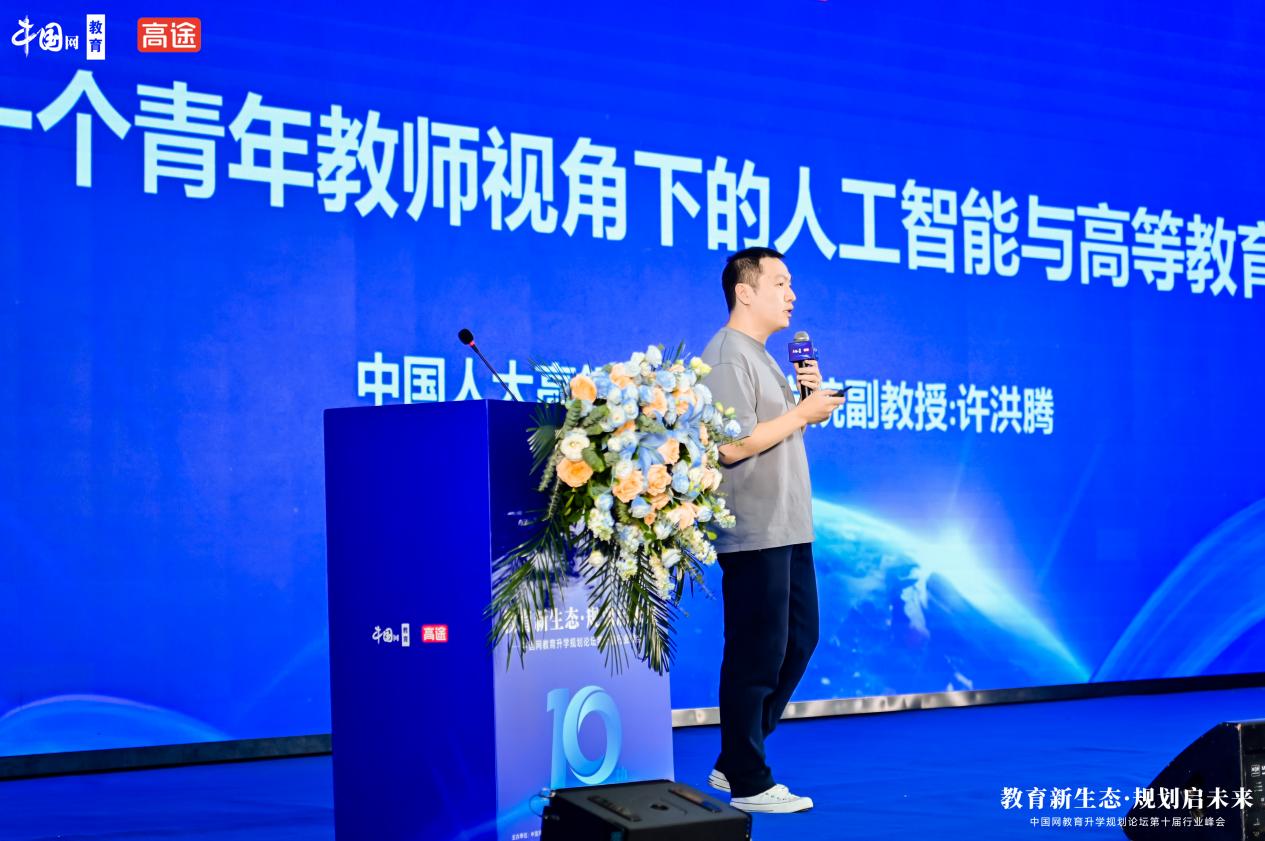 中国人民大学高瓴人工智能学院副教授许洪腾做主题演讲:《一个青年教师视角下的人工智能与高等教育》,以青年教师的独特视角,深入剖析了人工智能与高等教育融合的深层逻辑,让升学规划从业者对 AI 时代高校育人的变革有了更深刻的思考。